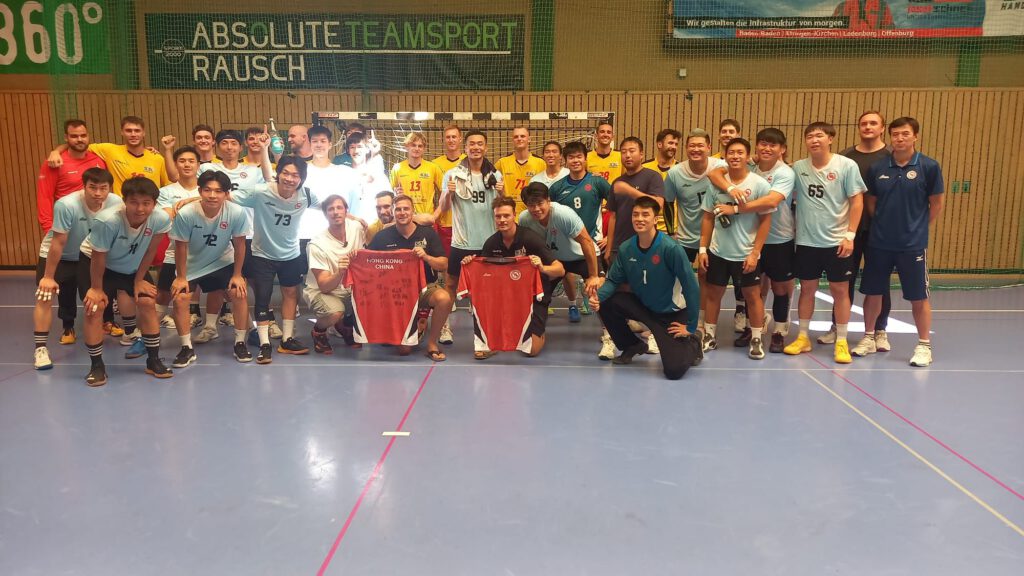 Die erste Herrenmannschaft der Spielgemeinschaft S3L schlägt die Handball Nationalmannschaft aus Honkong mit 32:26