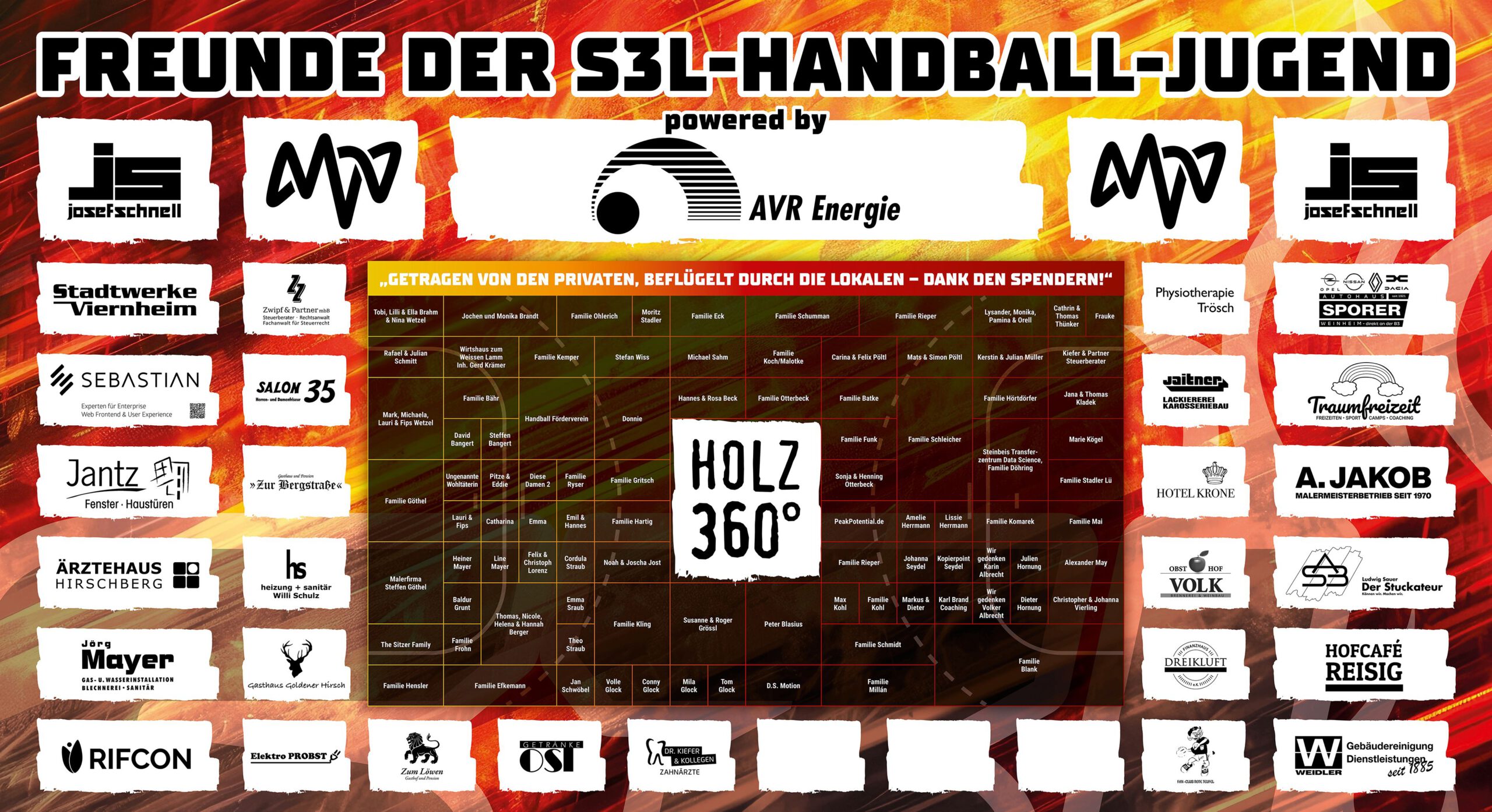 Um den finanziellen Rahmen neu zu stecken, haben wir die Tafel „Freunde der S3L-Handball-Jugend“ im Vorfeld der Saison 25/26 neu konzipiert. Neben zahlreichen Spendern finden sich jetzt darauf auch zahlreiche Partner, die unsere Jugend durch ihr Sponsoring unterstützen. Besonders hervorheben möchte ich das Engagement des neuen Namensgebers AVR Umwelt Service GmbH sowie der Partner Rifcon GmbH und der Volksbank Kurpfalz eG. „Wir können unheimlich stolz und dankbar sein, so viele Partner gewonnen zu haben“,